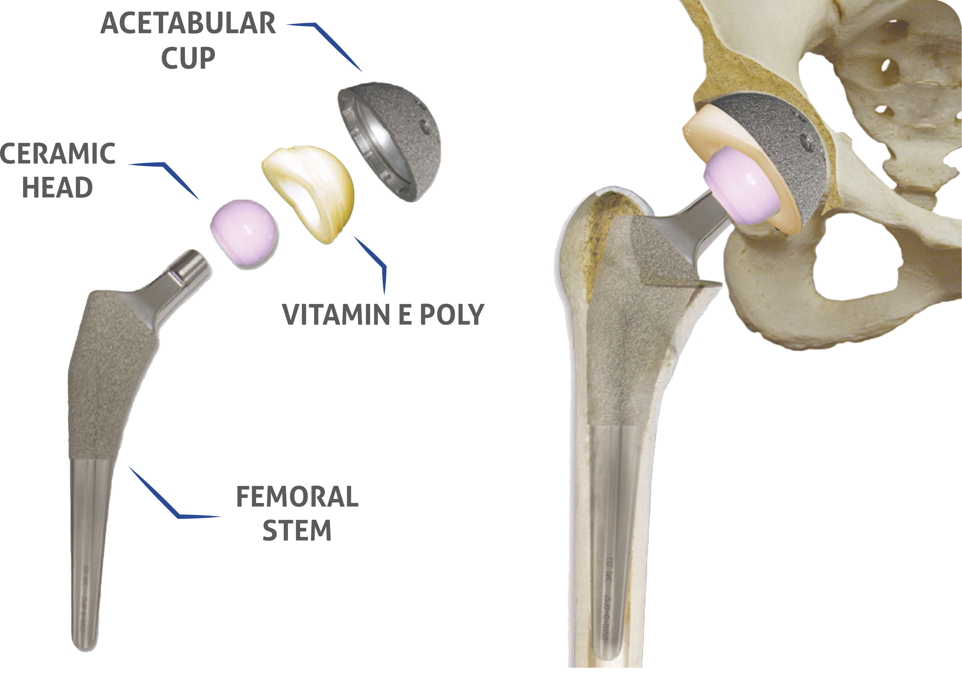 The hip is one of the body's largest joints. The hip joint is like a ball and socket joint. The ball is formed by the top of the thigh bone (femur) and the socket is formed by some part of the pelvis. Usually, the surfaces of the bones are covered with a smooth cushion-like coating (cartilage). A thin tissue called the synovial membrane surrounds the hip joint. In a healthy hip, this membrane makes a small amount of fluid that lubricates the cartilage and eliminates almost all friction during hip movement and the bands of tissue called ligaments (the hip capsule) connect the ball to the socket and provide stability to the joint. Over time, the cartilage can wear away, causing pain, stiffness, and discomfort in moving. The solution is Hip Replacement or Hip Arthroplasty, which is a surgical procedure where the worn-out surfaces of the hip are replaced with a prosthesis. Hip replacement can relieve or eliminate pain, improve mobility, and help you regain your joyful life