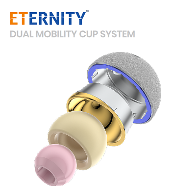 Eternity Dual Mobility System implants are designed to enhance stability and reduce the risk of dislocation.